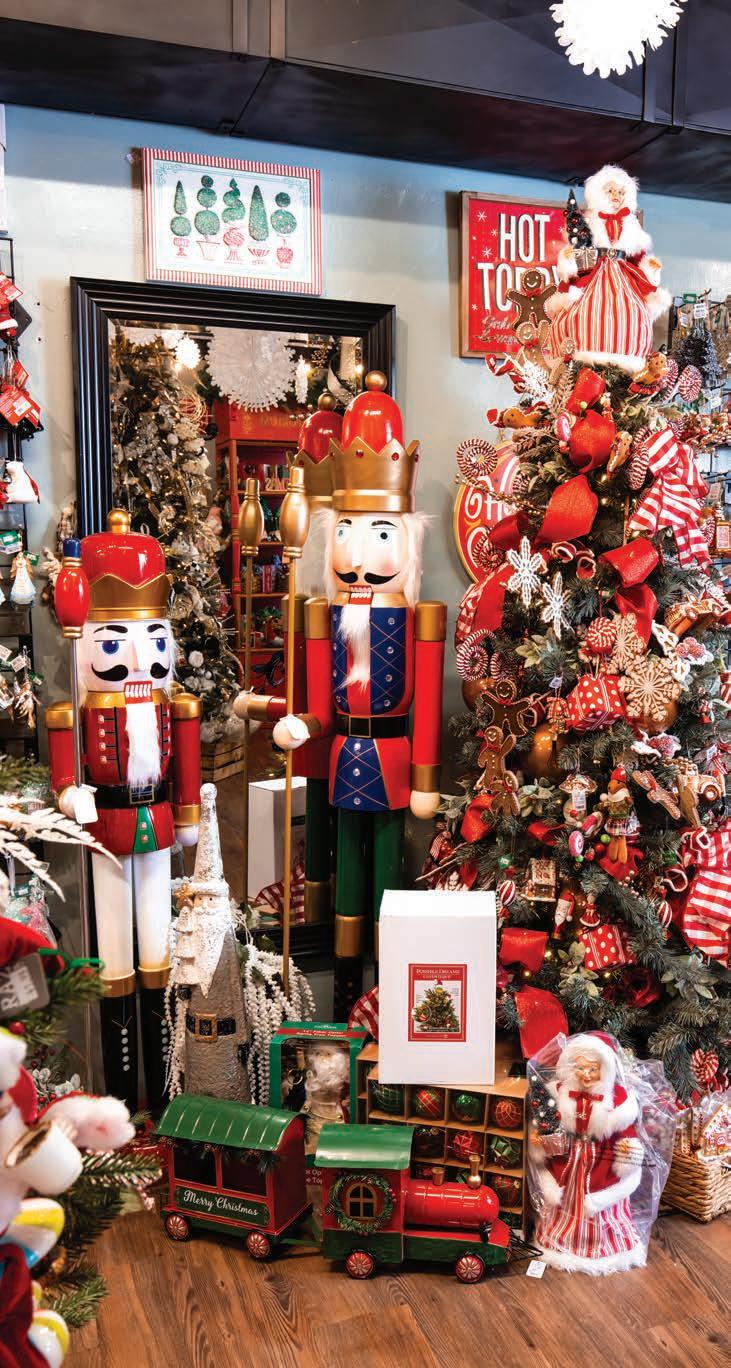 The couple’s Christmas collection grew so big that they started a business, rst selling online then later in antique mall booths, including Relics. Around this same time, Baker began installing Christmas lights for customers, a service the shop still o ers alongside Christmas tree decorations. The move to a storefront was a natural progression as their demand increased.