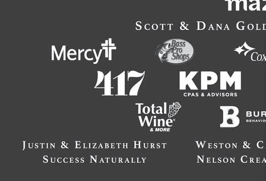 Sponsors: 417 Magazine, Mid-Missouri Bank, Community Foundation of the Ozarks, Gri n Industries, MediantHealth, La Quinta Inn, History Museum on the Square, Parkcrest Dental Group, Rachel & Jordan Heinz, Palm & Paddle, Ozarks Creative Productions, glOh Studio, The Royal, Arkifex Studios, Elegant Linens + Rentals, Miles Boyer, Springfield Ballet Guild