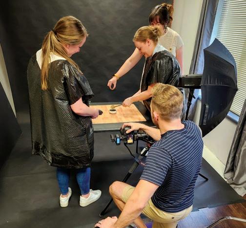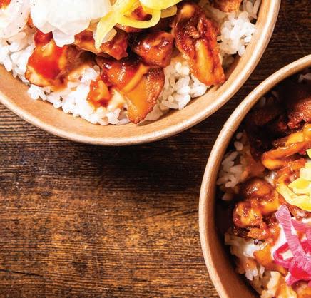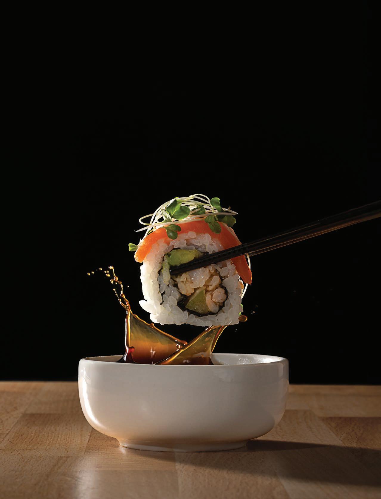 Creating the soy sauce splash on this issue’s cover was a multi-person job. In our photo studio, Art Director Jordan Dykstra dropped a small pebble into a dish of soy sauce, while Creative Director Sarah Patton precariously held a piece of sushi just above the bowl. This created the e ect of the sushi being dunked into the soy sauce. The team utilized high-tech equipment including trash bag smocks to avoid getting splattered in soy sauce. They repeatedly dropped the pebble into the soy sauce from varying heights until Senior Photographer Brandon Alms caught the perfect splash. It was messy, but the reward was eating a lot of le over sushi.