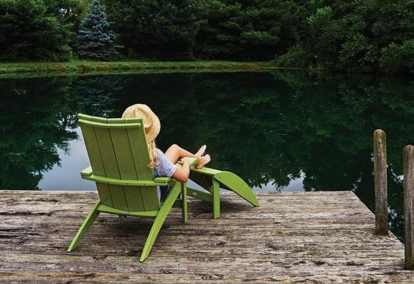 Originally designed to withstand the rugged terrain of the Adirondack Mountains, the Adirondack chair has become an iconic lawn and beach chair. Although the classic design is as popular as ever, a new more contemporary style is being favored for more modern lake homes and backyards. This specific eco-friendly