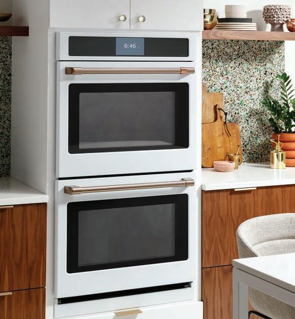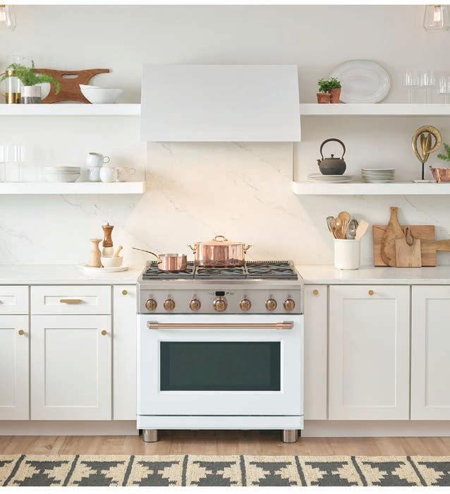 GE Appliance’s Café series you can customize personal style elements with copper hardware and finishes on its range of ovens, cooktops, coffee machines, refrigerators and dishwashers, to mention a few. For people who want a bigger statement, copper countertops could be the perfect addition to your home. They’ve grown in popularity because of their beautiful warmth and antimicrobial qualities. They are also said to resist bacteria better than other materials like stainless steel. Not ready to commit to more permanent copper fixtures? Try accessorizing with copper pots, kettles and other kitchen accessories. The look is timeless and unique!