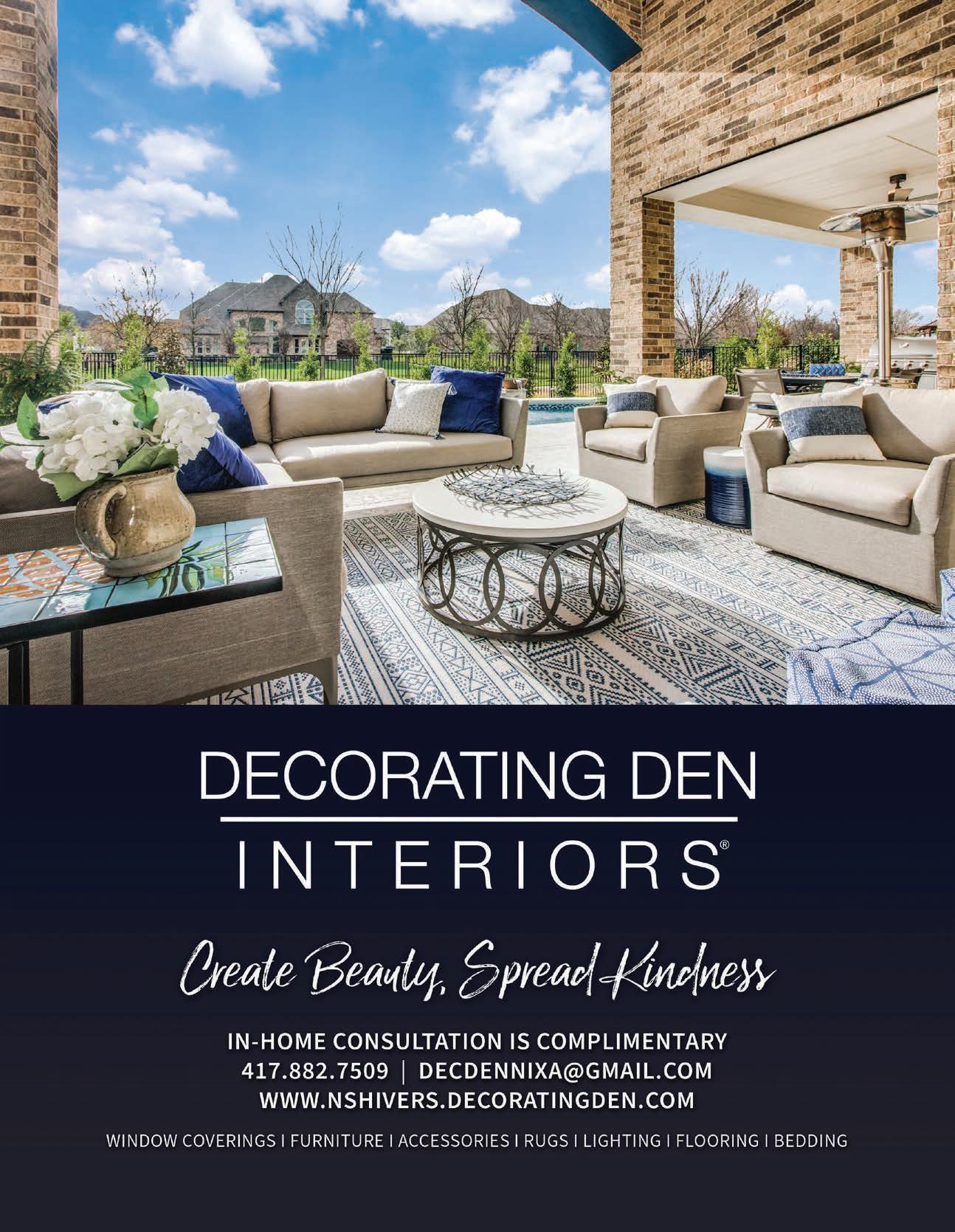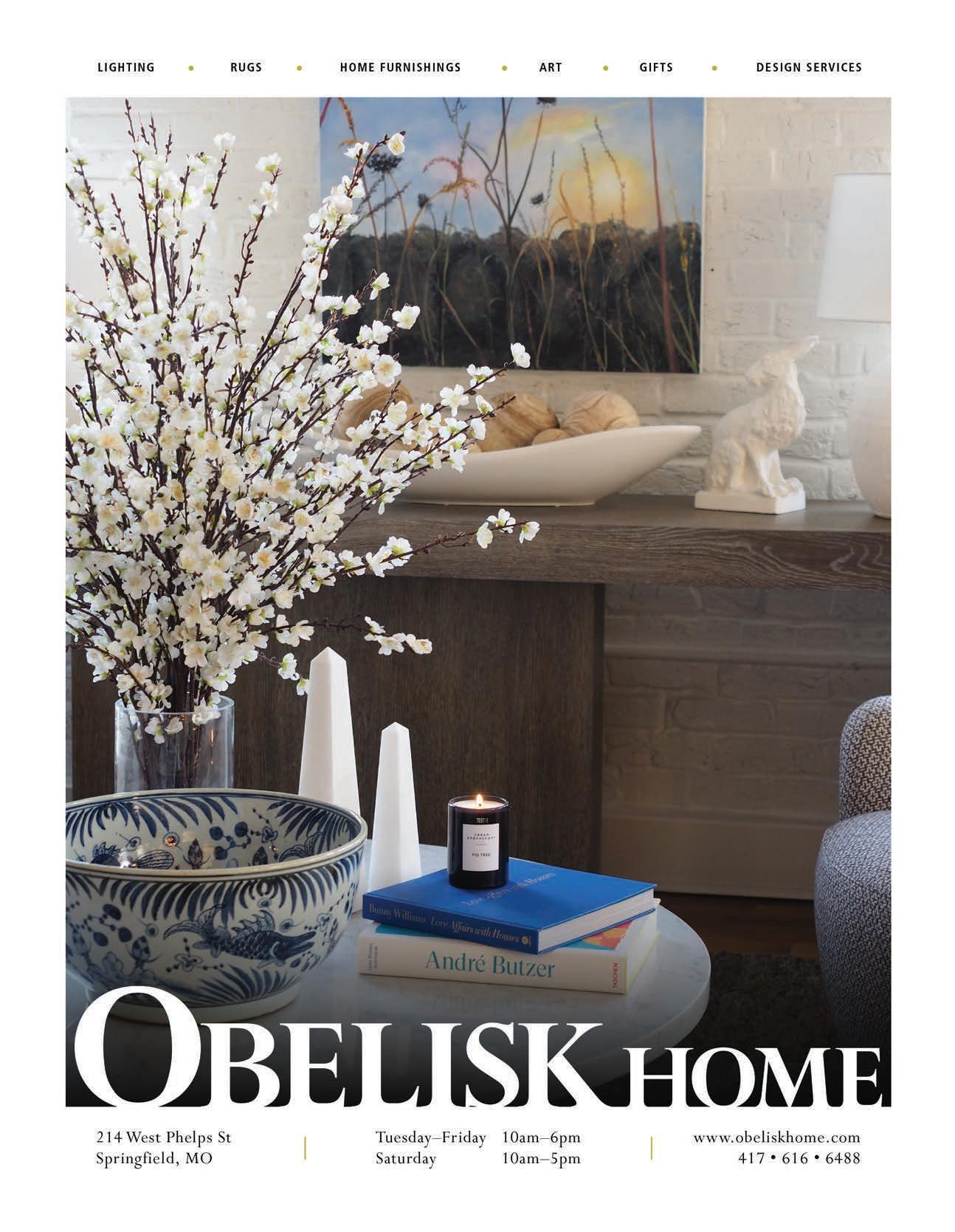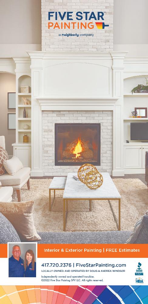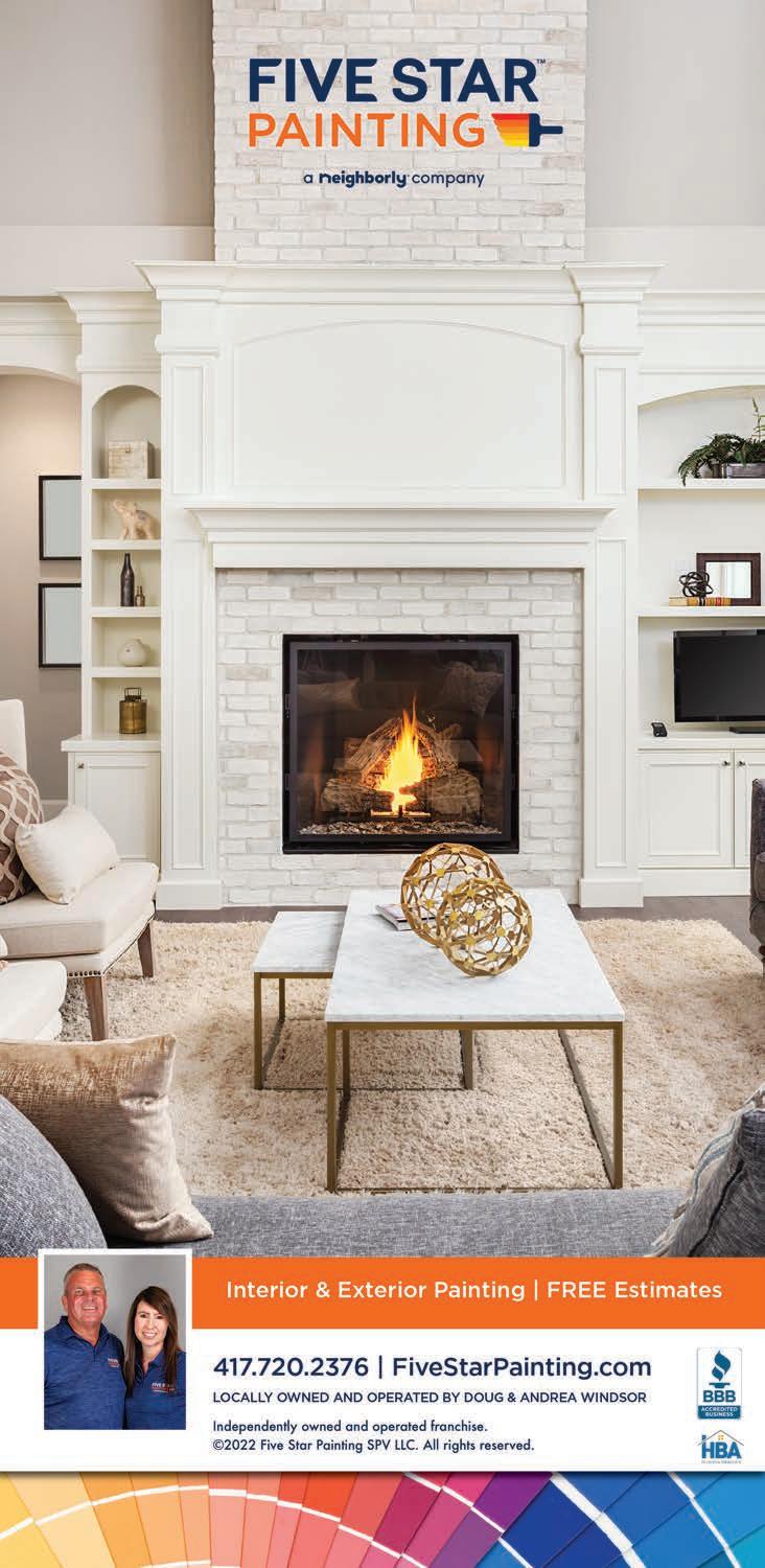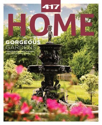 417 Home (ISSN # 1939-5337) is published quarterly by Whitaker Publishing, LLC, 2111 S. Eastgate Ave., Springfield, MO 65809-2146 © Whitaker Publishing, LLC. Editorial, advertising and business offices: ph: 417-883-7417; fax: 417-889-7417; web: 417mag. com. All rights reserved. Reproduction or use, without written permission, of editorial or printed content in any manner is prohibited. The magazine accepts no responsibility for unsolicited manuscripts, artwork or cartoons. SUBSCRIPTION RATES: $27. Cover price: $4.95. Back issues, if available: $7, plus $8 postage and handling. No back issue orders or subscriptions outside the United States. The Volume and Issue numbers appear on the front cover of the magazine. POSTMASTER: Send address changes to 417 Home, 2111 S. Eastgate Ave., Springfield, MO 65809-2146. Periodical postage paid in Springfield, Mo. and additional mailing offices. Printed in the United States of America.