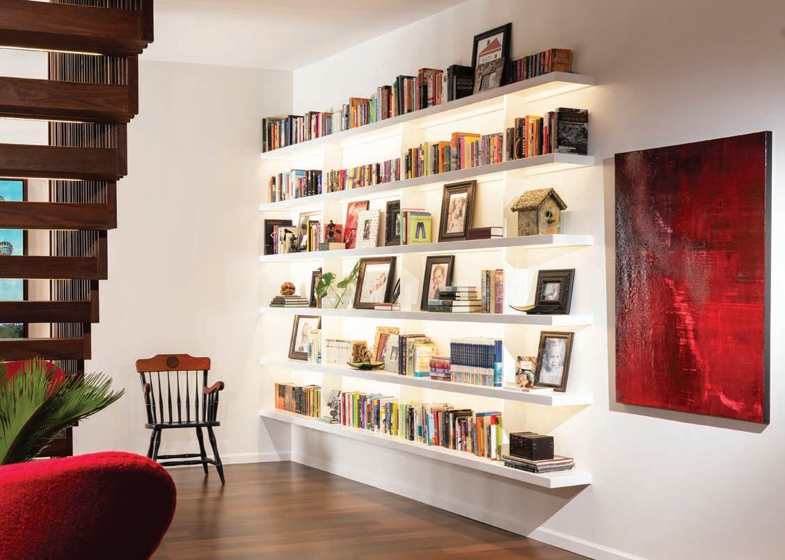 Photos by Jeremy Mason McGraw, Global Image Creations LIBRARY COLLECTION Taylor used the homeowner's large book collection as an accent piece of the home, drawing out pops of color and personal touches.COZY NOOK