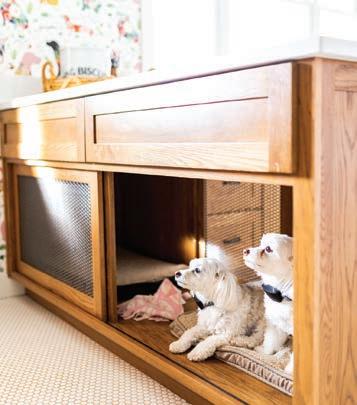 Miller's built-in dog crate is the perfect solution for both her four-legged friends and for creating more space in her family room.