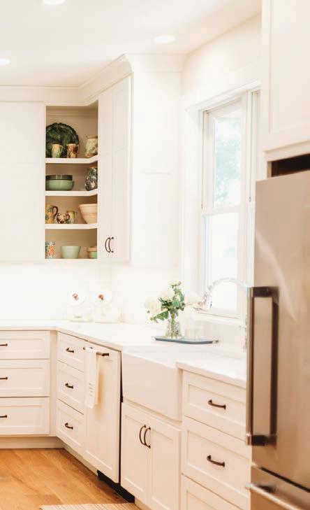 The counter material she landed on was Calacatta Clara quartz, which she values for its stain resistance, durability and overall look. “It’s got a really subtle veining,” she says. “It’s not just solid white, but it’s not busy at all. Some types of quartz can be a little too busy without looking like the original.”