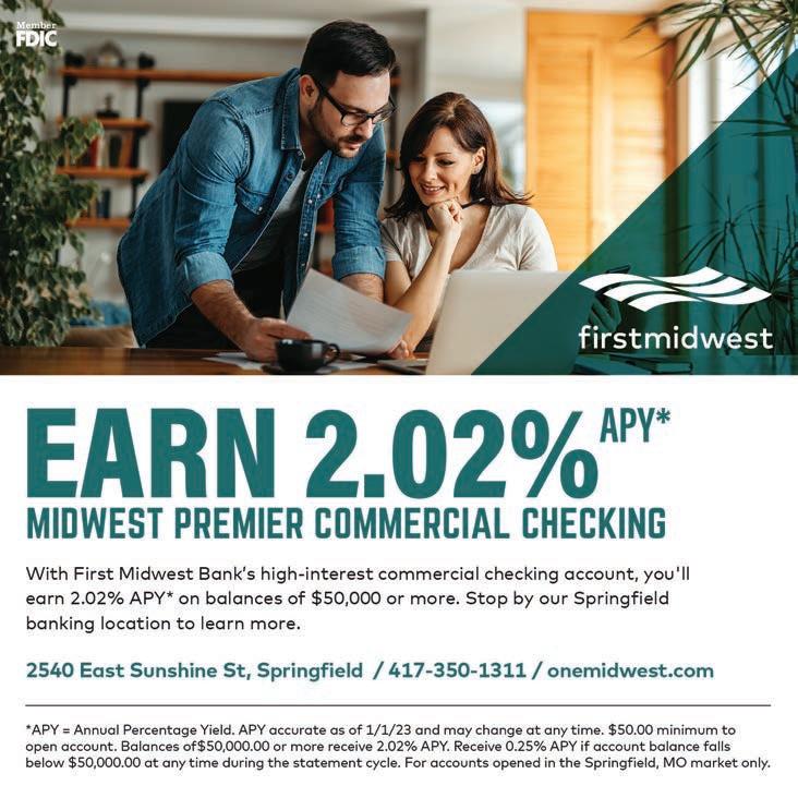 PROMOTION Day The largest one-day volunteer event in Southwest Missouri is back for its 32nd year. Thanks to everyone helping build a brighter future together! uwozarks.org/day-of-caring 320 N. Jefferson Ave. | Springfield 417.863.7700 In 2024, more than 40 nonprofit agencies are welcoming teams of willing workers to build, clean, landscape, paint and pack. That’s more than 1,000 people coming together for useful fun! SEE YOU ON JUNE 13, 2024 Giving back to the community is one of 417 Magazine’s highest priorities, and each month we support local non-profit organizations that keep 417-land thriving. These organizations and events contribute to the betterment of 417-land. 417 Magazine is proud to support these events hosted by charities and organizations that create TIMES for a CAUSE. 417MAG.COM • 417 MAGAZINE 115