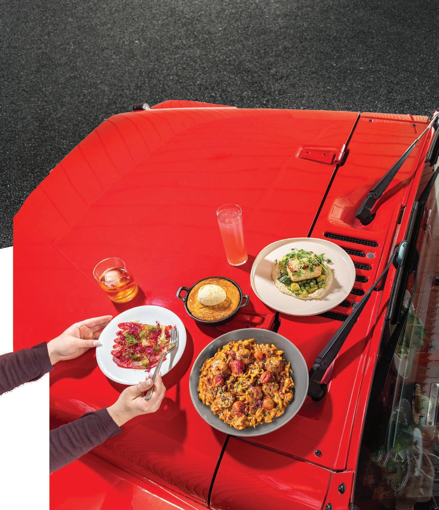 We took the 417 Jeep on the road for this month’s cover shoot. The dishes featured are from Conifer, a restaurant in Bentonville, Arkansas.