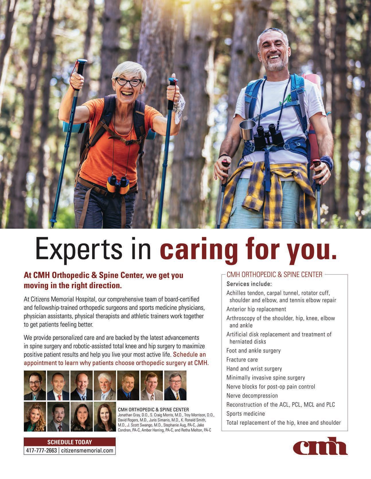 COMING SOON Aging Well, Branson Guide and Lake Life Pros to Know June 2023 For information on advertising, call Logan Aguirre at 417-883-7417 PROMOTION Shop Local Get your hands on these home and gift items from local shops. 47 Best Self Best Self is your guide for an all around better you. We’ve compiled the top professionals for health and beauty in 417-land—they’re all right here. 49 SPECIAL ADVERTISING SECTIONS extras 417MAG.COM • 417 MAGAZINE 15