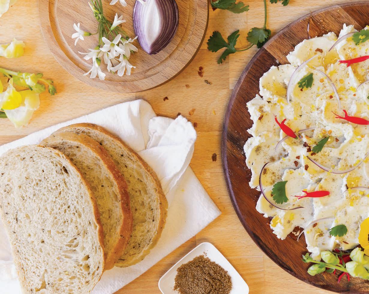 Next, add your herbs and spices, and the same rules apply here; feel free to only add particular seasonings to particular spots. Generously sprinkle on a variety of your favorite flavors from Chabom Tea & Spices (209 E. Commercial St., Springfield; 417-719-4311; chabomteaspice.com) We recommend a base of red pepper flakes, coriander, cardamom or fresh herbs like cilantro. For a little extra pizazz add edible flowers from Maypop Flower Farm (maypopflowerfarm.com) or Schaffitzel’s