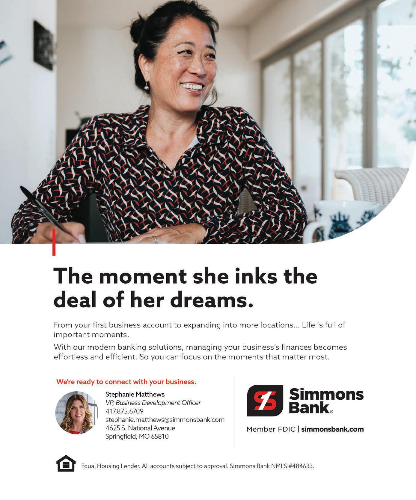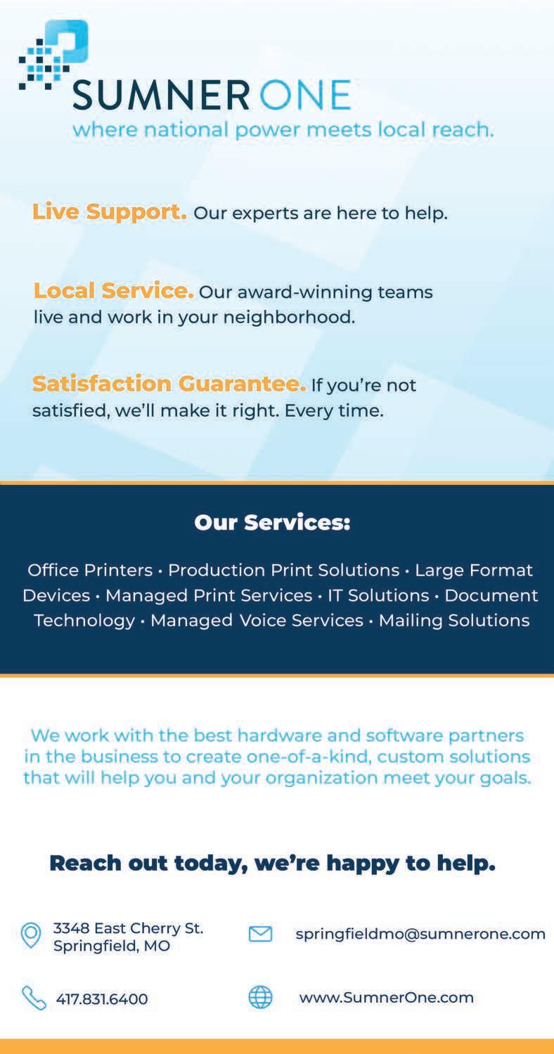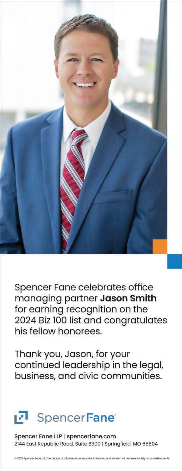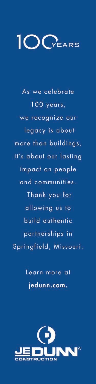 “Being part of the Biz 100 is a wonderful honor. However, I am even more honored to lead the exceptional team of tourism professionals at the Spring eld Convention and Visitors Bureau. Every day, we strive to boost Spring eld’s economy by growing our vibrant tourism community.”