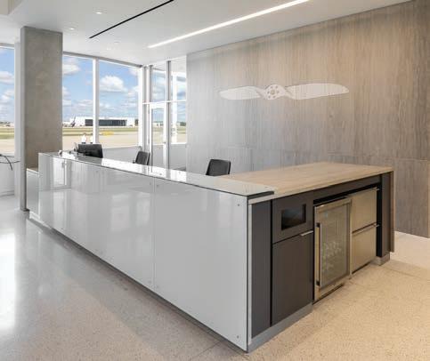 To better meet the growing needs of corporate customers that utilize the airport, nearly 4,300 square feet of high-end finishes have been added on to the original facility. A kitchen has been added for catering, and redesigned restrooms now better serve larger planes with more passengers.