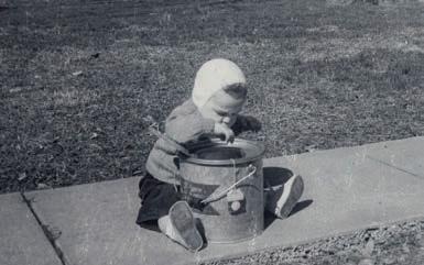Together with his father, mentor and hero, John A. Morris, and Johnny Morris (left). Showing interest in fish at a very early age, Johnny plays in a minnow bucket in the front yard of his childhood home in Springfield (below).