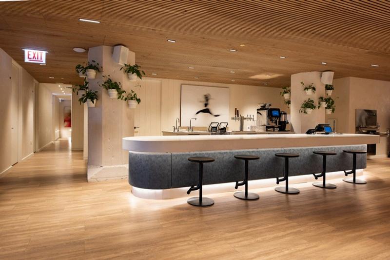 This sophisticated lounge and bar projec coordination to seamlessly align design installation, and construction sequencing of the build is a custom Tobin Ellis bar backlit elements that create a warm, inv Adjacent to the bar, the space includes a b banquet hall and a flexible kitchen designe small-plate service and large-scale caterin project’s success hinged on close colla the owners, architects, and kitchen spe every detail was executed efficiently limitations and equipment lead-time challe