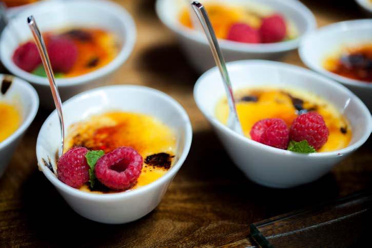Some of the menu’s highlights are baby artichokes pan-seared with basil pesto sauce and escargots tarte served with roasted shishito peppers. For dessert, thin layers of puff pastry delicately sliced in front of guests and crepes suzette flambéed tableside are a definite treat.