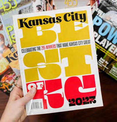 KC Publishing, LLC 605 W. 47th St., Suite 200 Kansas City, MO 64112 (913) 469-6700 Kansas City magazine is published monthly by KC Publishing, LLC. No part of this publication can be reprinted or reproduced without the publisher’s permission. Kansas City magazine assumes no responsibility for unsolicited materials. Kansas City magazine adheres to American Society of Magazine Editors guidelines, which requires a clear distinction between editorial content and paid advertising or marketing messages.