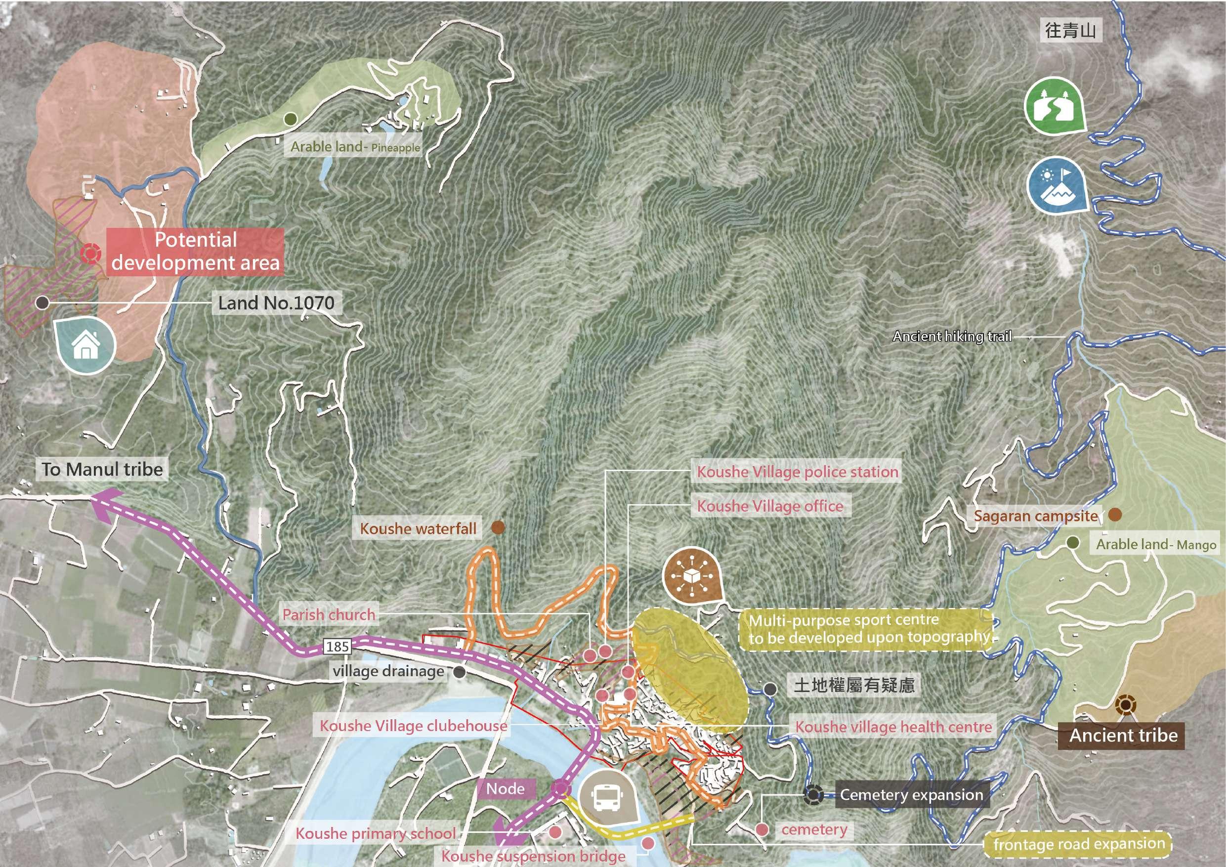 As majority of the tribes were suffered severely from the typhoon Morakot in 2009, that casued landslides in various tribes in two townships. In order to cope under the Comprehensive Development Plan of Pingtung County, this project aims to provide a sustainable development framework and to make effective use of land for the indigenous, specifically amid three sectors- life, production and ecology. Predominantly expanding the coverage of potential Agricultural Development- Type 4