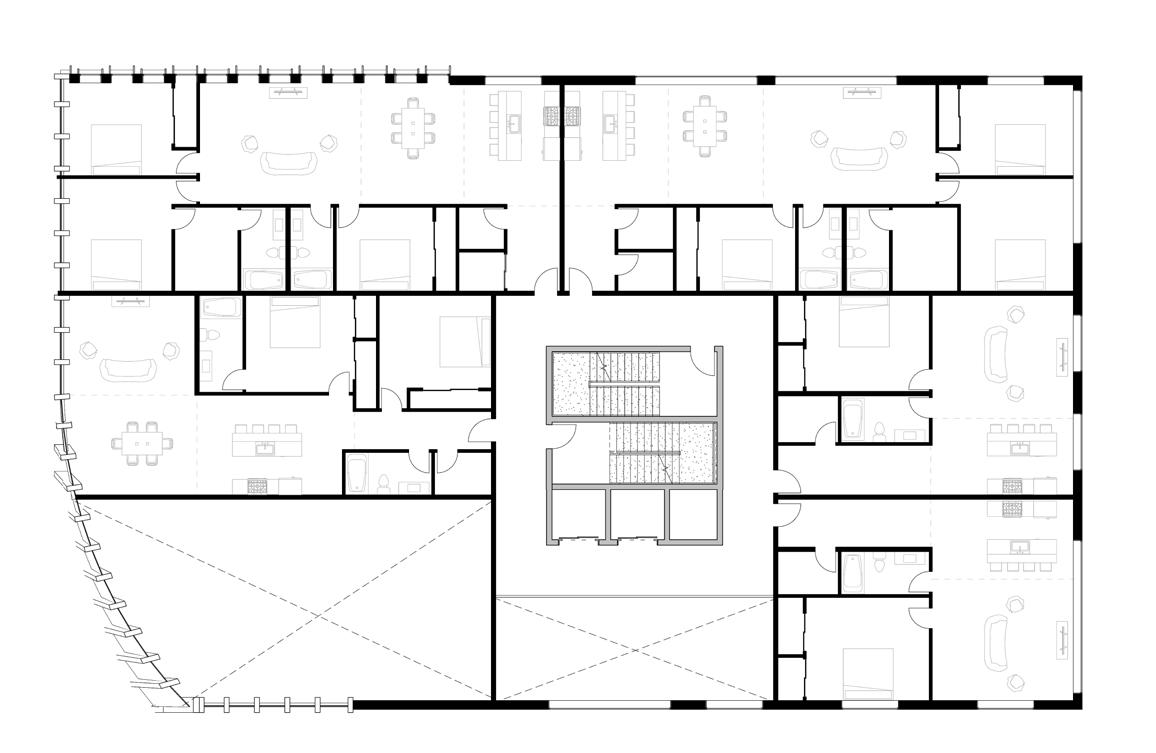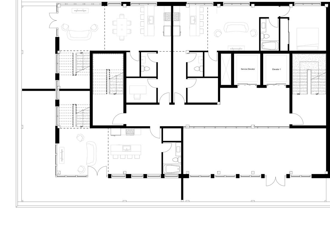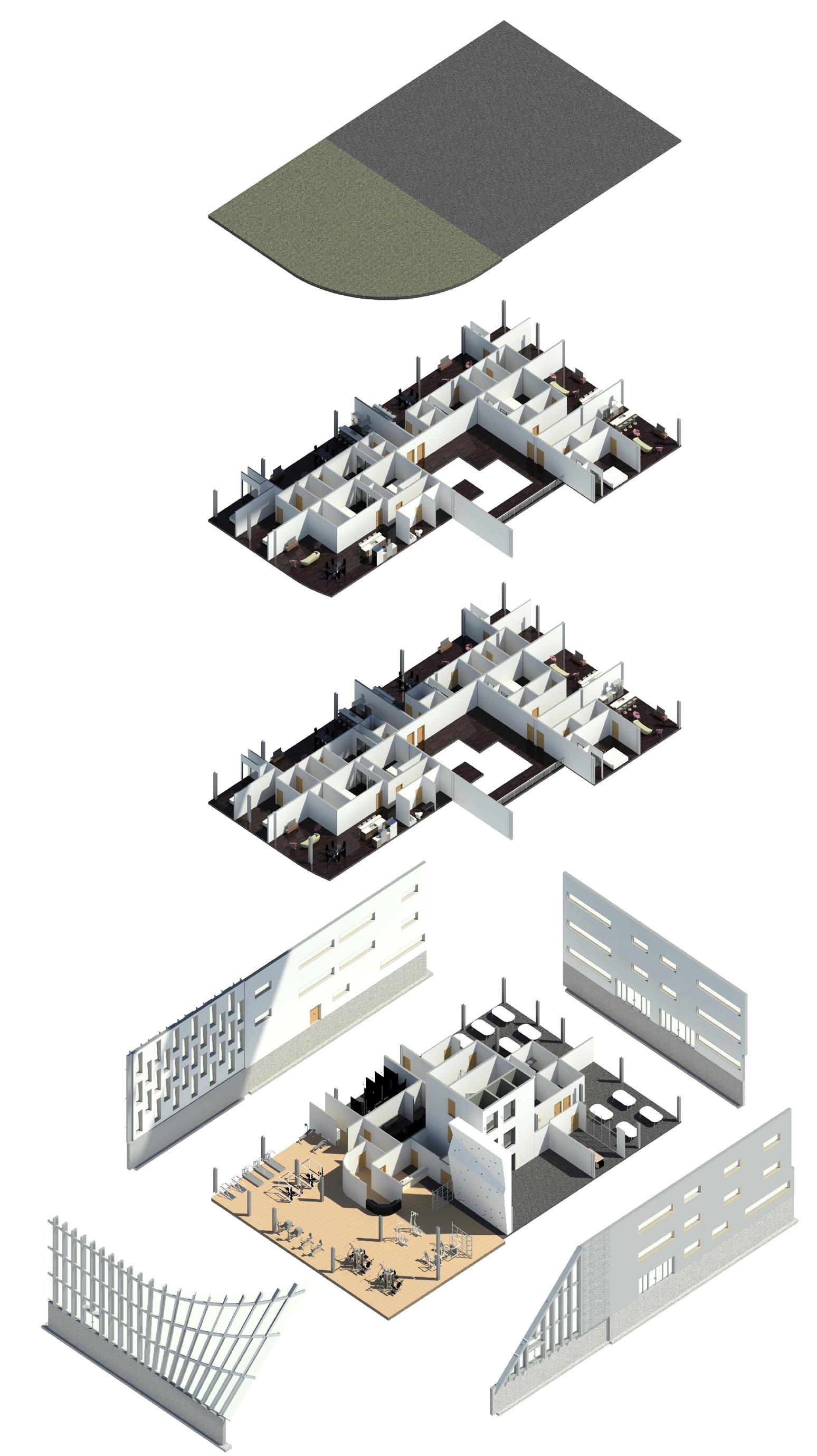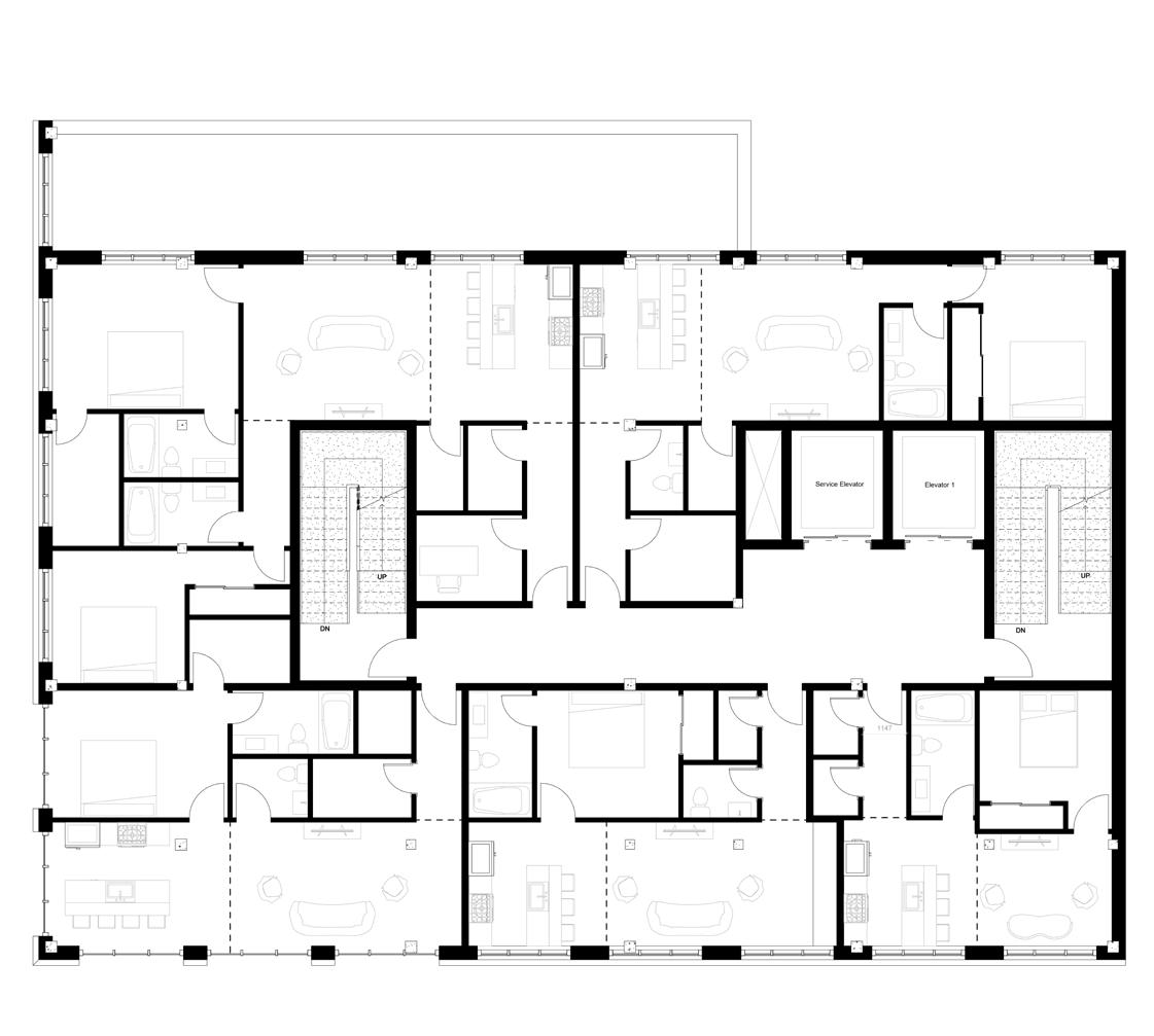 28 Green Roof 2 Bedroom Unit 2 Bedroom Unit Existing Windows Custom Windows Open Gym Area Curved Curtain Wall 2 Bedroom unit 1 Bedroom unit 1 Bedroom unit Existing Windows Office Entrance Rock Climbing Wall Apartment Entrance Gym Entrance