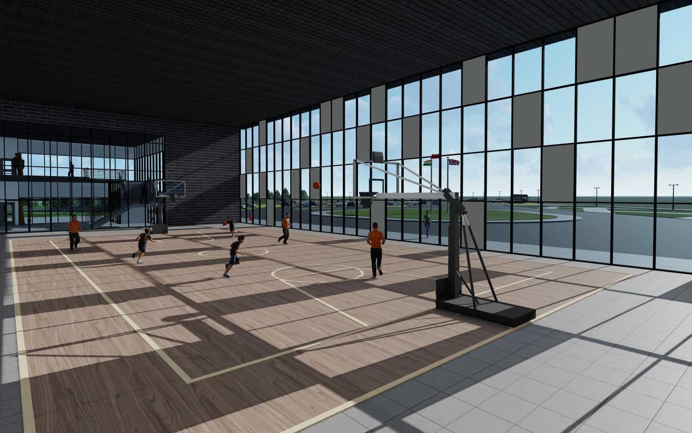 The envisioned 2-story Community Centre presents an exciting array of amenities, such as recreational facilities, a library, an art gallery, rental spaces, ample car parking, and essential building services thoughtfully incorporated within its partial basement. The building’s design is centered around the basketball court.