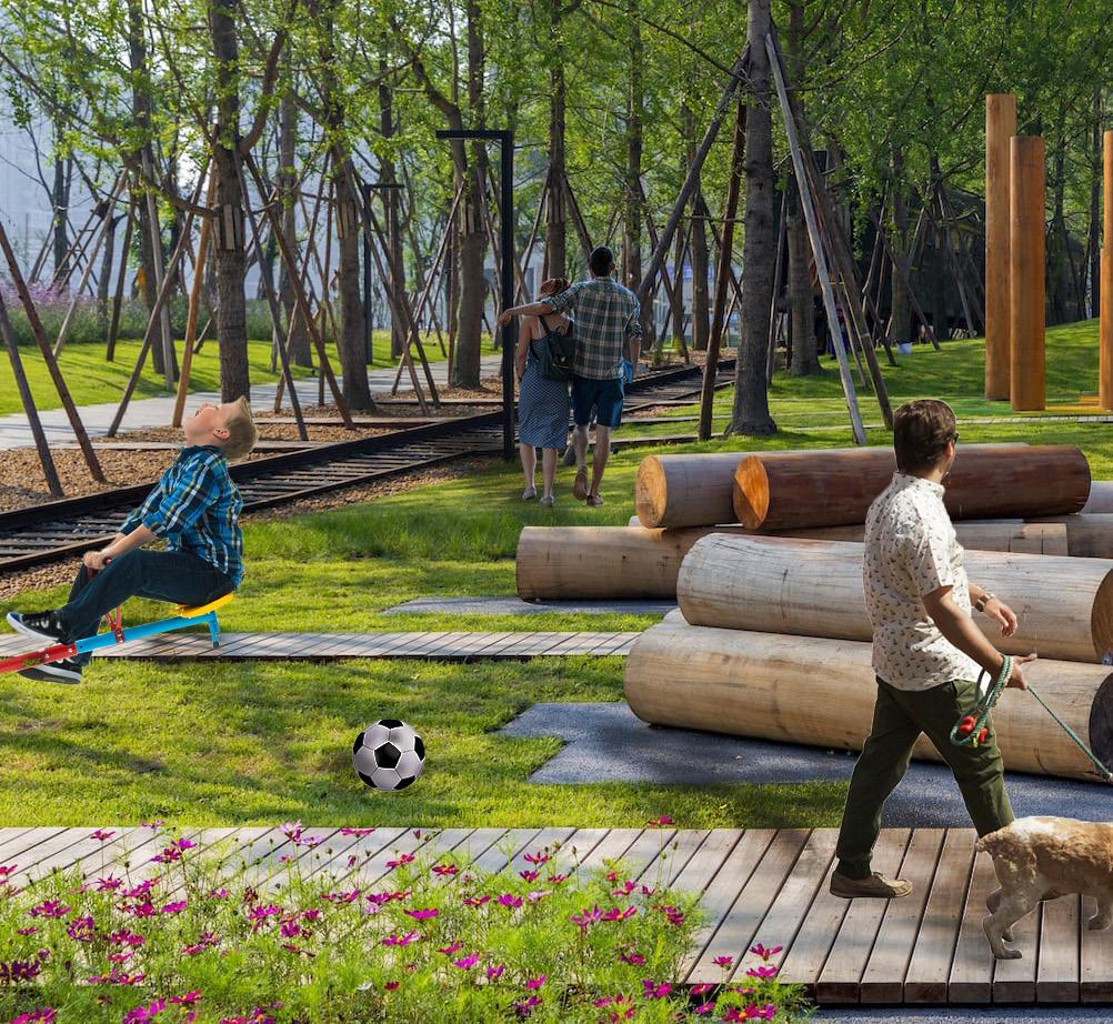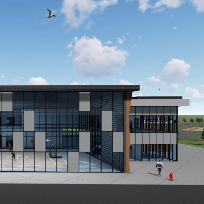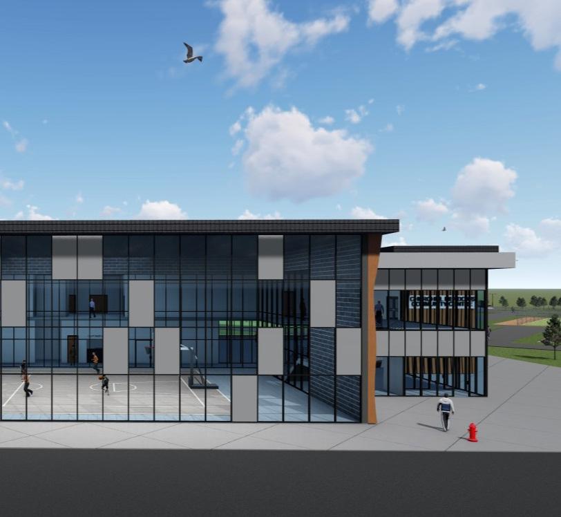 The thoughtfully planned site proposal features an array of outdoor attractions, including two soccer fields, a designated off-leash area for dogs, a picturesque trail park, a vibrant kids’ play and splash area, a tennis court, an efficient storm management system, and a charming gazebo.