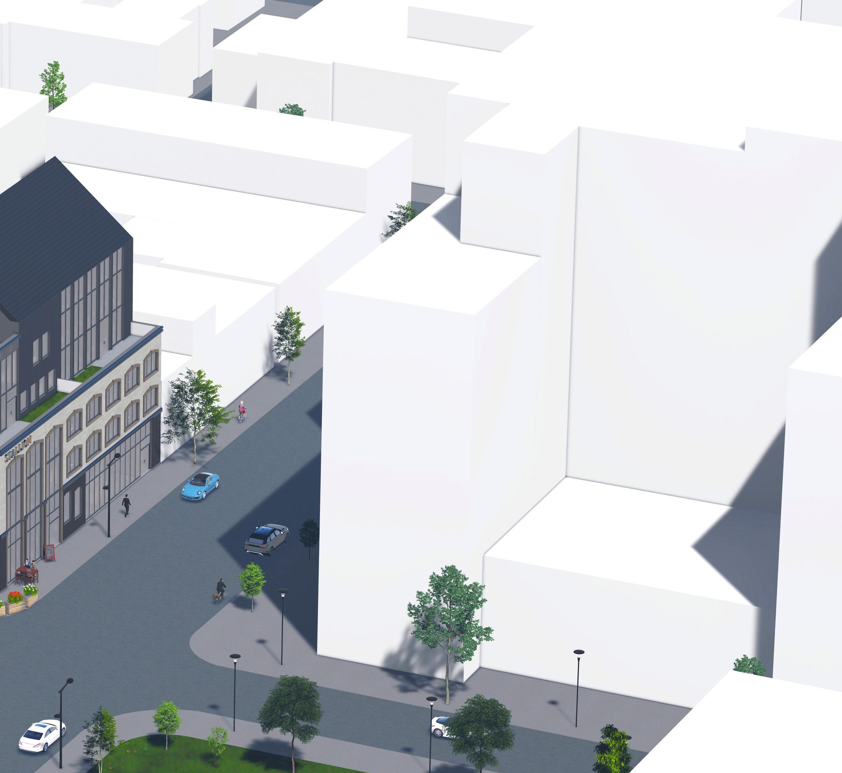 This project is completed under a global skill opportunity (GSO) program that allowed me to virtually collaborate internationally on an adaptive reuse project for a post office in Birkerød, Denmark. The design proposal includes a restaurant in the existing building on the ground floor with an outdoor patio, and the new addition includes a bike shop on the left side lot and residential units