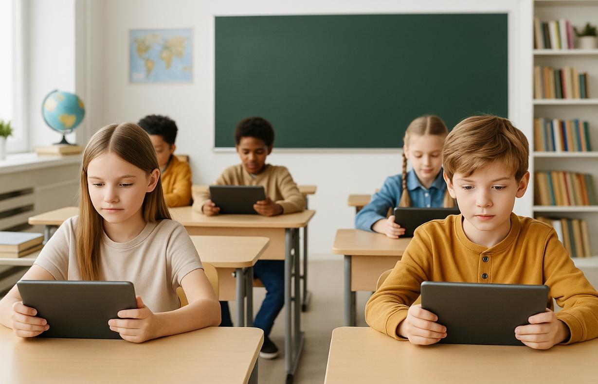 Creación de imágenes complementarias (niños leyendo con tablets, libros digitales, accesibilidad).