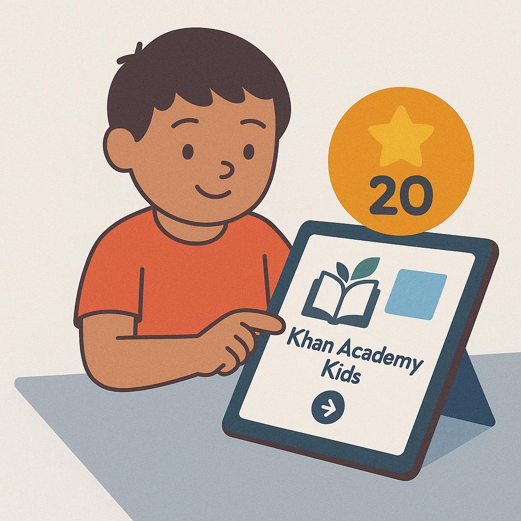 Descripción visual: Clip corto de un niño ganando puntos en aplicación de lectura Khan Academy Kids.