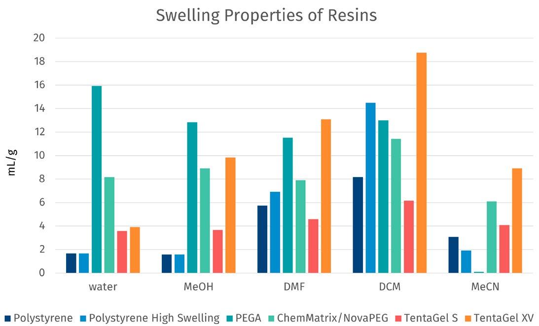 Preloaded resins (e.g., based on Trityl, TCP, TentaGel, Methoxybenzhydryl, Merrifield, PAM, Rink, Sieber, Wang), scavenger resins, hydrazone resins, poly(acrylamide) resins, Cyclover