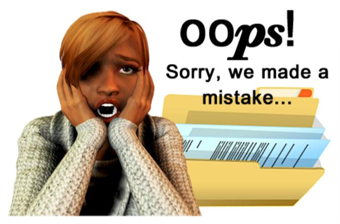 We don't like making mistakes, but it does happen from time to time. We're sorry for the inconvenience it causes. If you’ve spotted an error, it may be listed on our corrections page at: www.sundimeorningsistas.org/corrections.htm If not, please let us know with a quick email to: sundiemorning@hotmail.com
