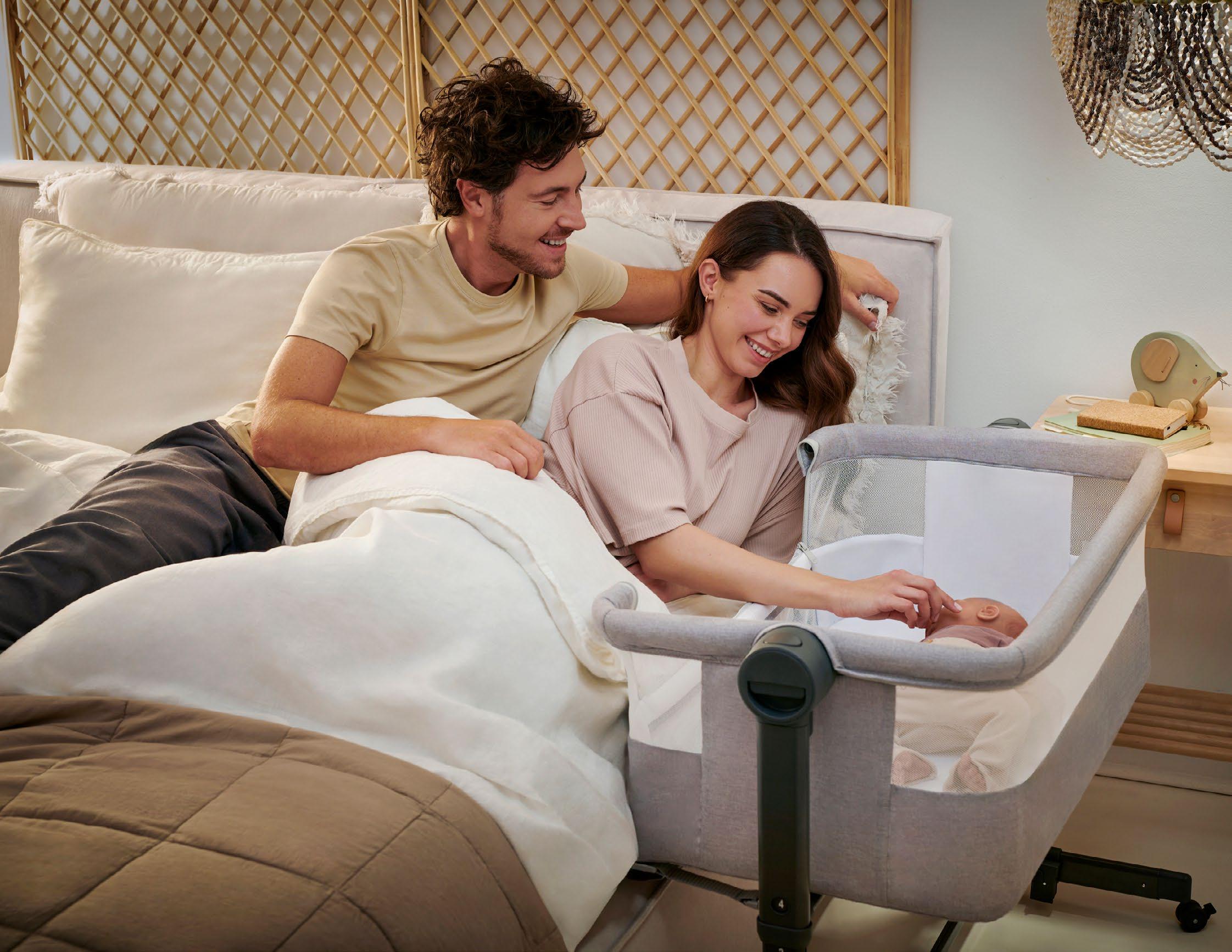 While the WHO recommends sleeping near your baby during the first few months, having the baby sleep in the same bed as the parents is not advised due to the risks of suffocation and sudden infant death syndrome (SIDS). Co-sleepers are specifically designed to provide a safe solution, allowing the baby to sleep alongside the parents’ bed on a firm mattress at the same height. Thanks to their attachment strap, which secures the cosleeper to the parents’ bed, no gap is created between the two, eliminating any risk of falling.
