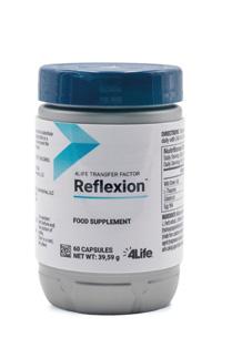 4Life Transfer Factor Reflexion™: Extracto de hierba de avena salvaje (Avena sativa L.), L-teanina, agente de recubrimiento (hidroxipropilmetilcelulosa), fórmula 4Life TriFactor™ (con calostro bovino [leche] y yema de huevo), antiaglomerante (estearato de magnesio), agua y antiaglomerante (dióxido de silicio).