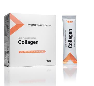 4Life Transfer Factor Collagen™: Colágeno de pescado hidrolizado, edulcorante (sacarosa), maltodextrina, caldo de huesos de pollo, aroma natural de mango y fresa, ácido ascórbico, ácido málico (regulador de acidez), ácido cítrico (regulador de acidez), cloruro de sodio (agente aromatizante), polvo de algas Haematococcus pluvialis, acetato de d-alfa tocoferol, fórmula 4Life Tri-Factor (con calostro bovino [leche] y yema de huevo), biotina, edulcorante (extracto de hojas de Stevia rebaudiana), regulador de acidez (acetato de sodio), colágeno de membrana de cáscara de huevo, acetato de vitamina A y extracto de semillas de trigo (Triticum aestivum).