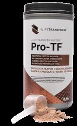 PRO-TF™ Chocolate: Proteína de suero de leche (leche, soja), maltodextrina, proteína de clara de huevo, cacao en polvo, aroma natural de chocolate, triglicéridos de cadena media, fórmula 4Life Tri-Factor™ (con calostro bovino [leche] y yema de huevo), cloruro de sodio, espesantes (goma xantana, carboximetilcelulosa sódica) y edulcorantes (sucralosa, acesulfamo K).