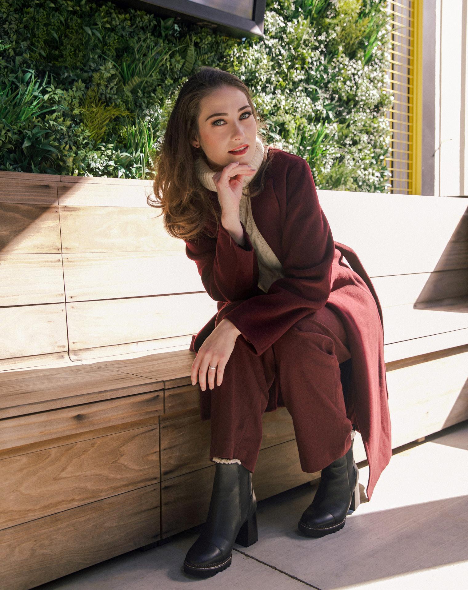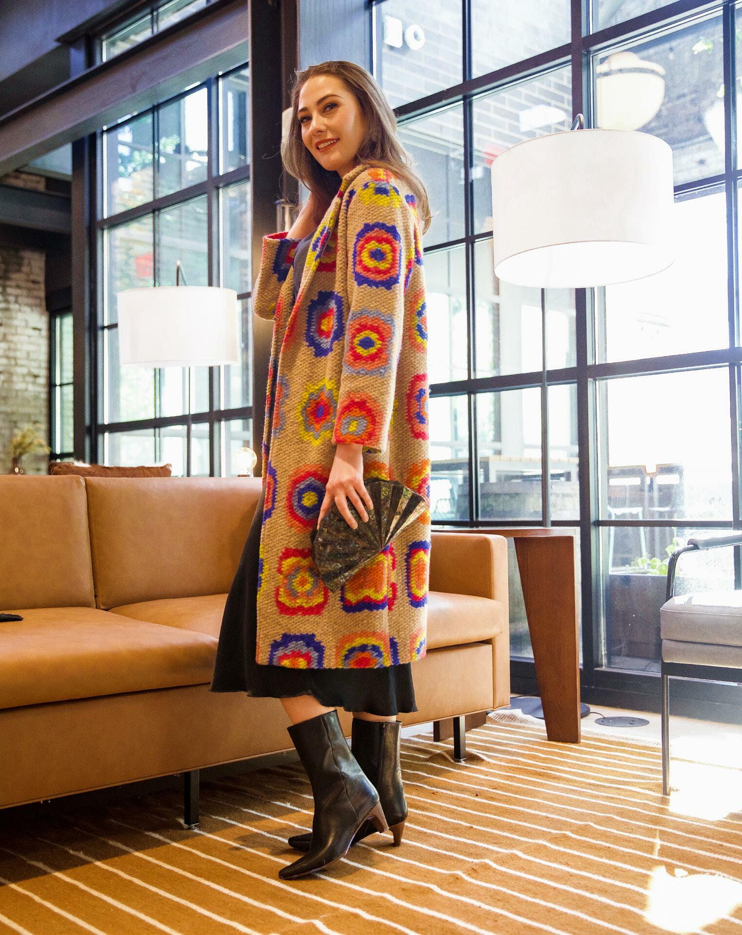 Jumpsuit from Mimi Morton Coat from Lansky 126 Shoes from Joseph in Laurelwood Earrings from Kittie Kyle
