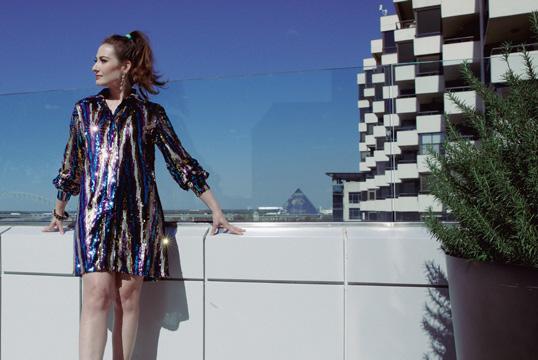 Dress and earrings from The Pink Door Shoes from Joseph in Laurelwood