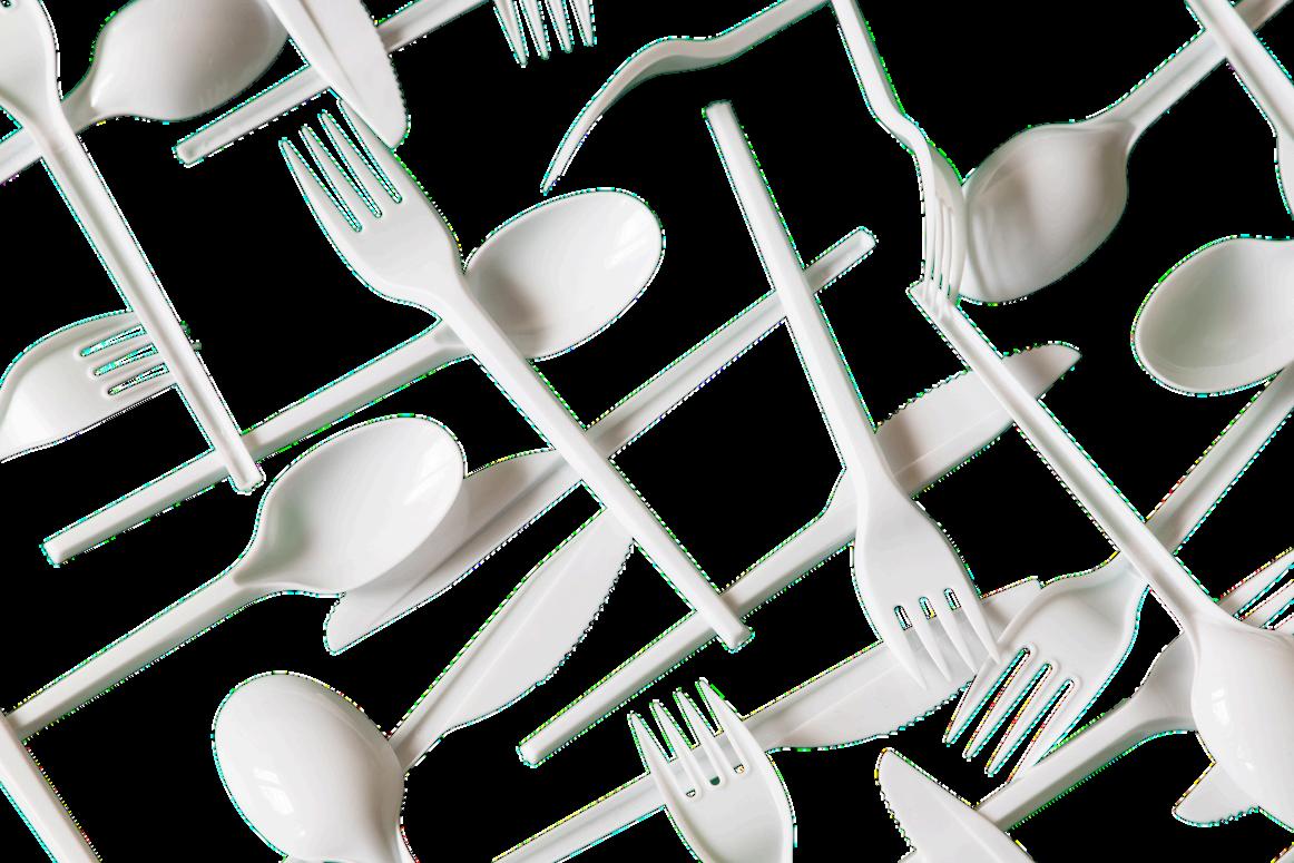 Forks,knives,andspoonsmade ofplasticareoftenusedattakeoutrestaurantsandevents.