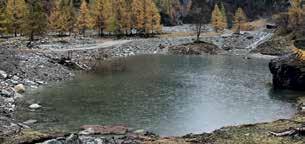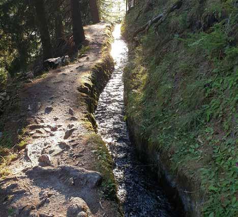 route cantonale, où les ruines d’un ancien oratoire saluent les montagnes du fond de la vallée. Depuis là, il faut suivre les indications pour entendre à nouveau chanter un bisse, celui de Niouc, il offre une autre facette de cette ancienne halte pour des familles de StLuc sur le chemin du remuage.