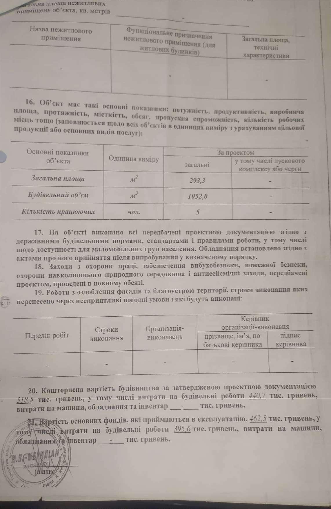 Декларація про введення в експлуатацію добудови «М.В. Меридіан»