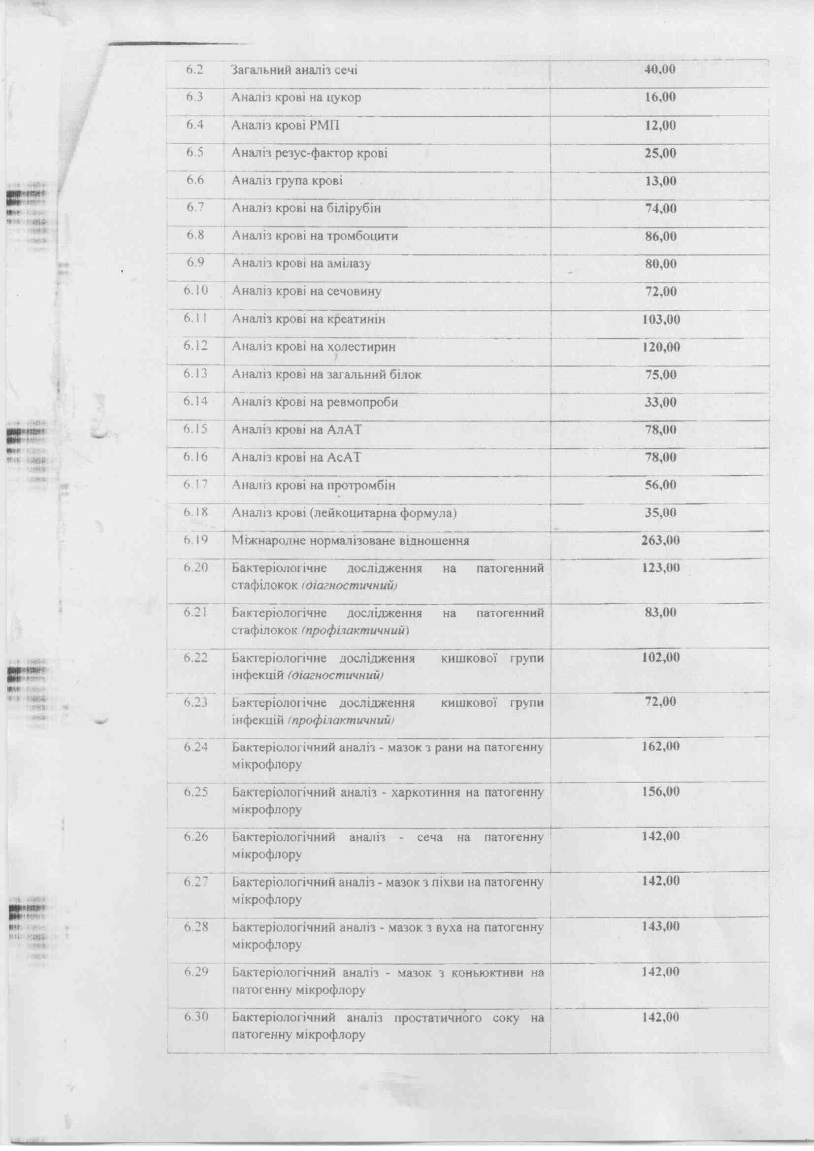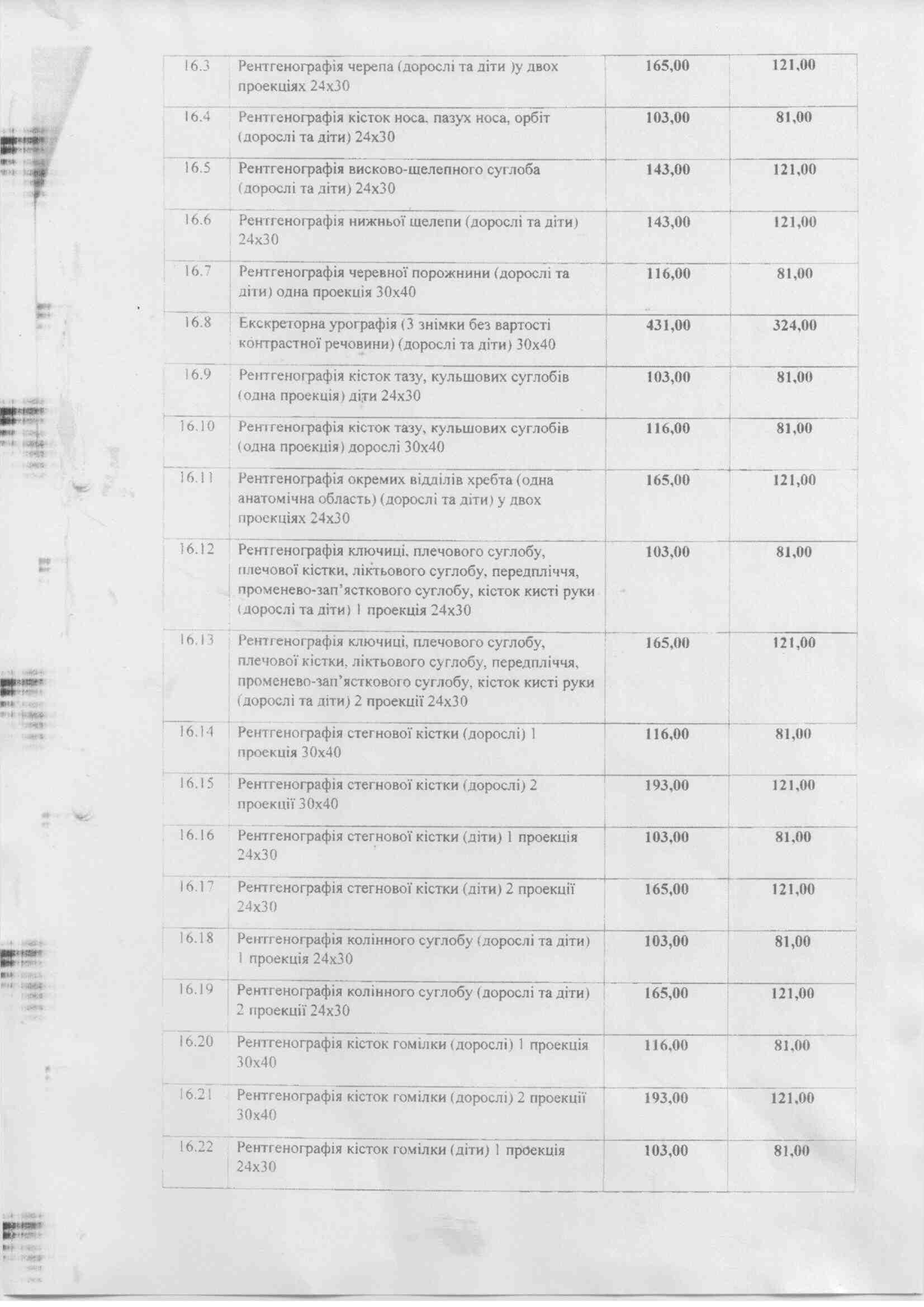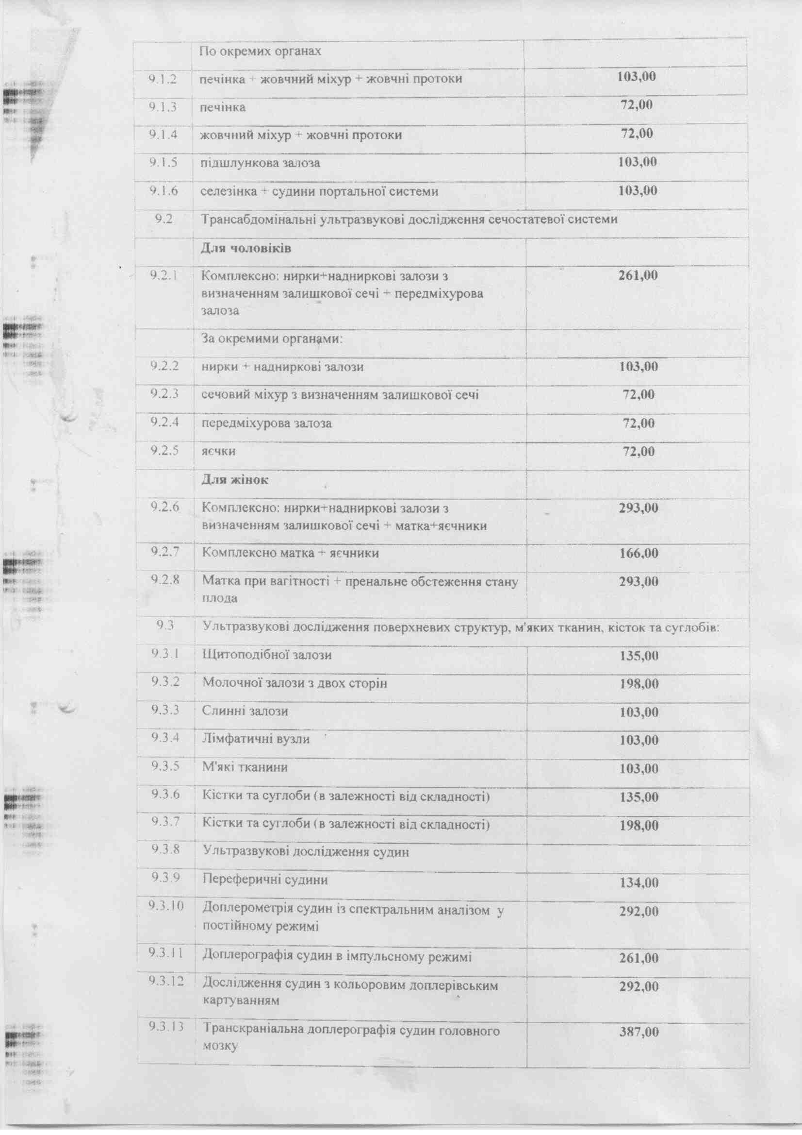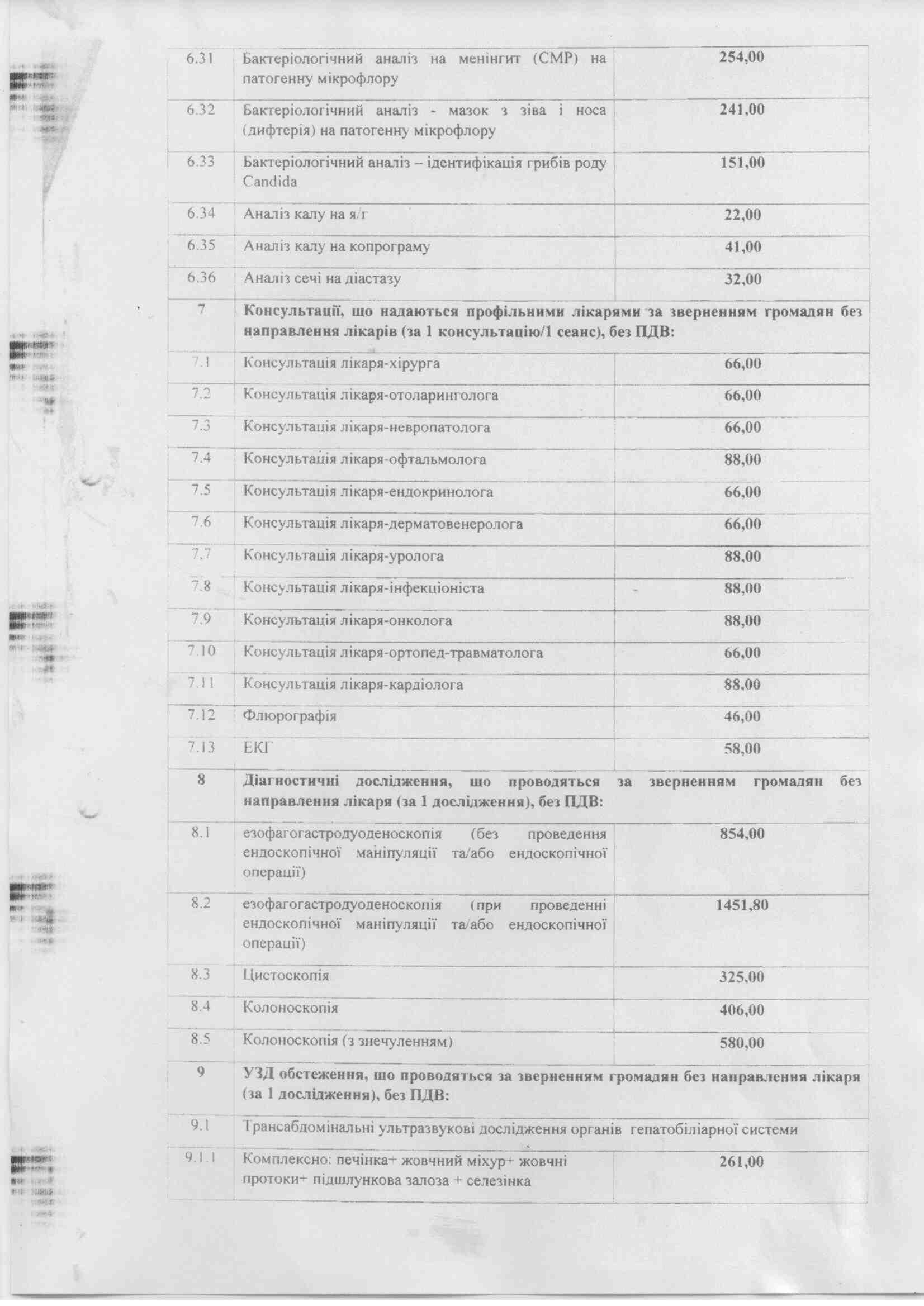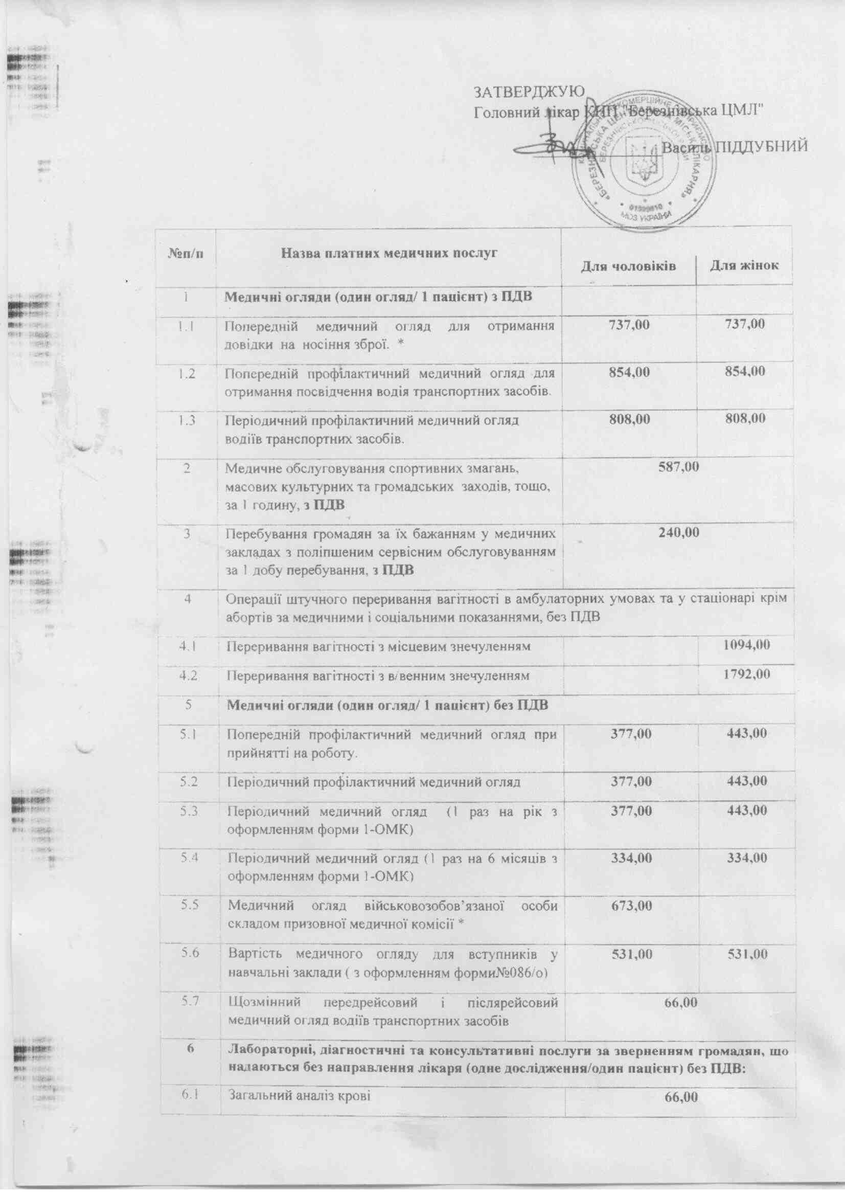 Список платних послуг Березнівської ЦМЛ