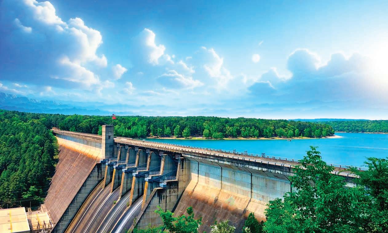 Greers Ferry Dam is a concrete dam built between 1959 and 1962 on the Little Red River in Cleburne County. Its primary function is flood control, but it also serves as a hydroelectric power plant. The dam impounds Greers Ferry Lake, which offers swimming, cliff diving, boating, fishing, scuba diving and camping. The Greers Ferry National Fish Hatchery, located below the dam, is another popular destination. The hatchery, operated by the U.S. Fish and Wildlife Service, primarily raises rainbow trout, which thrive in the colder water.