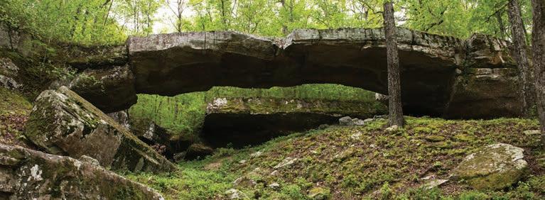 ABOVE: The Natural Bridge of Arkansas is a naturally occurring rock formation nestled in the foothills of the Ozarks, about four miles from Clinton. The rock formation is about 120 feet long and 4 feet thick at the center of the arch formation. In the late 19th century, American Outlaw Belle Starr (a well-known associate of the Jesse James and Cole Younger Gang) was thought to have used the property as a hideout.