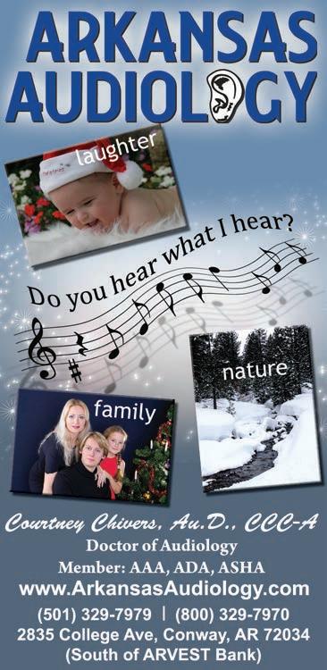 6, with the Holiday of Lights Christmas Parade in Downtown Searcy. Berryhill Park will be adorned with beautiful, twinkling lights, with a horse-drawn carriage to take visitors through the park. Thursday, Dec. 4, through Sunday, Dec. 7, and Thursday, Dec. 11, through Sunday, Dec. 14, visitors can enjoy a drive-thru “Living Nativity” at Benton and Cloverdale. Admission is free.