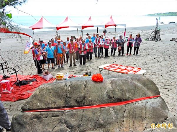 明,呼 阿美族停⽌⽴碑動作。