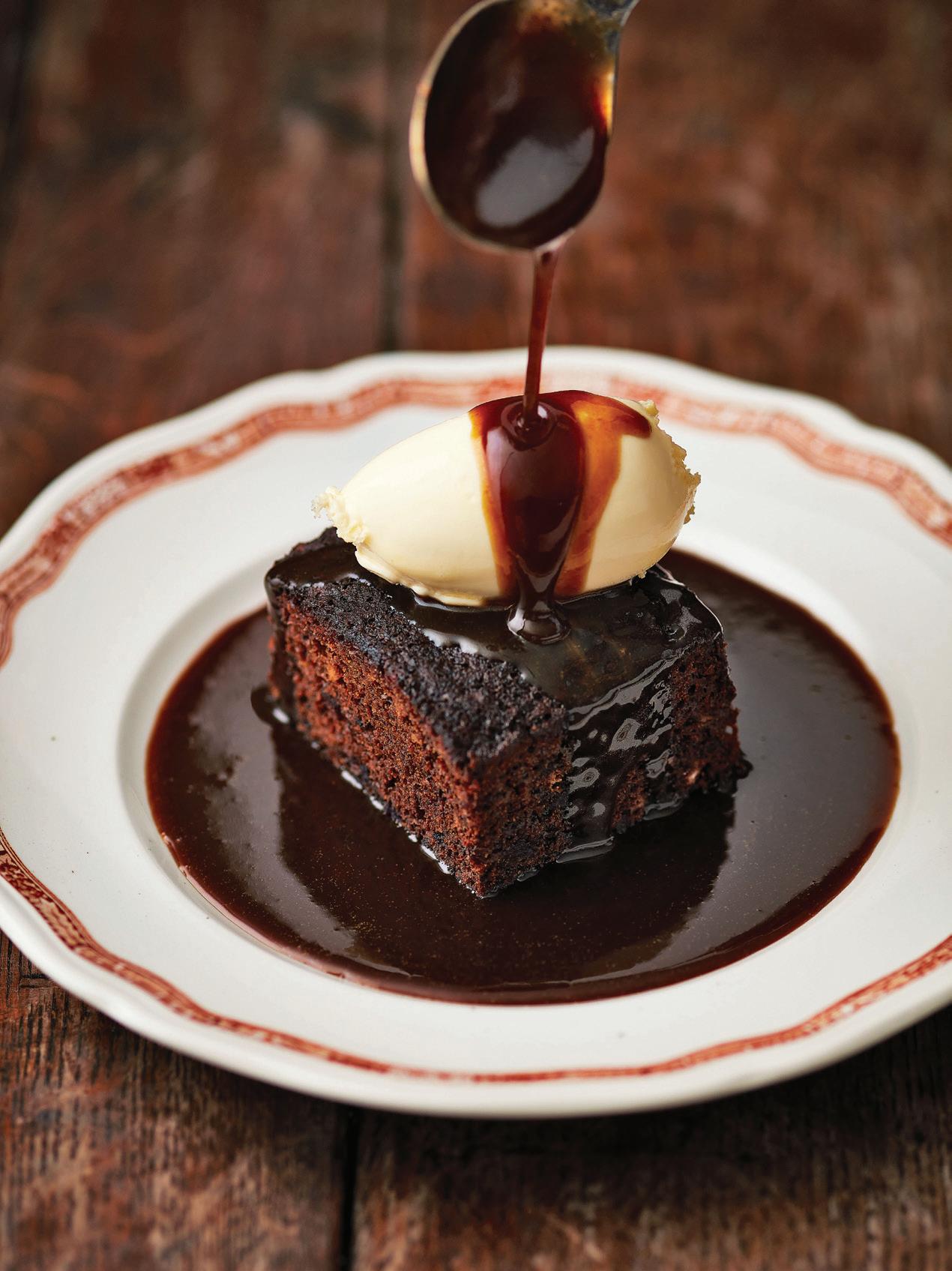 To serve, cut squares of the pudding, spoon over the toffee sauce and top each portion with a dollop of clotted cream.