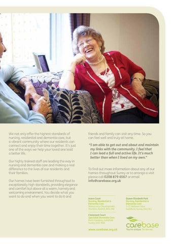 “I am able to get out and about and maintain my links with the community. I feel that I can lead a full and active life. It’s much better than when I lived on my own.” To find out more information about any of our homes throughout Surrey or to arrange a visit please call 0208 879 6567 or email info@carebase.org.uk