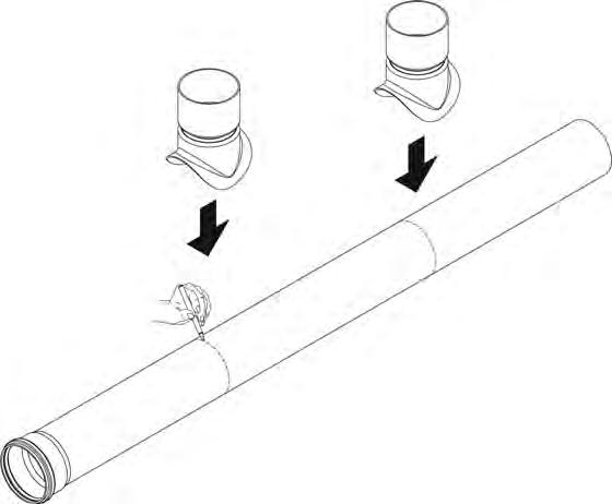 Замерьте гнездо для клеевого патрубка и нанесите пунктирную линию посередине гнезда При монтаже нескольких патрубков, все патрубки должны располагаться на одной прямой