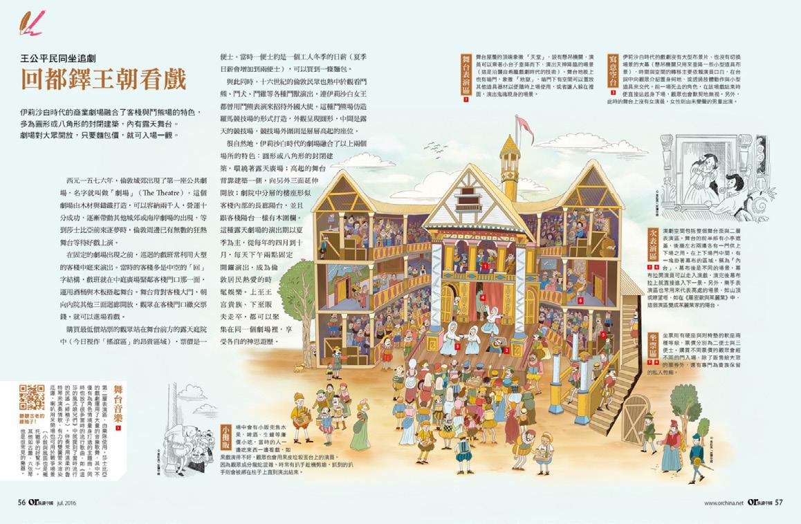 此插畫以「穿越時空來看戲」為主題,巧妙融合湯顯祖與莎士比亞的戲 劇世界,呈現中西方舞台設計的文化差異與藝術魅力。