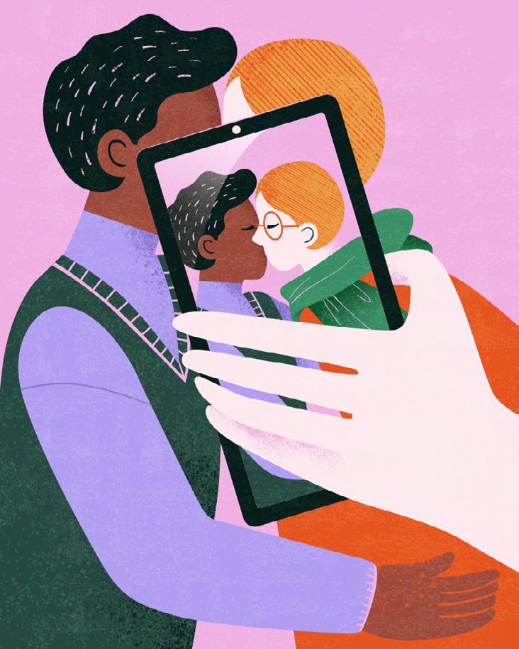 Shutterstock作為全球領先的高品質影像的授權平台,致力於為各地企業、行銷公司及媒體組織提供多樣 化的內容支持。此組插畫以活潑鮮明的色彩與平面插畫風格,生動展現情侶間的互動情感,一般可將此 主題素材使用至情人節相關文宣廣告中。