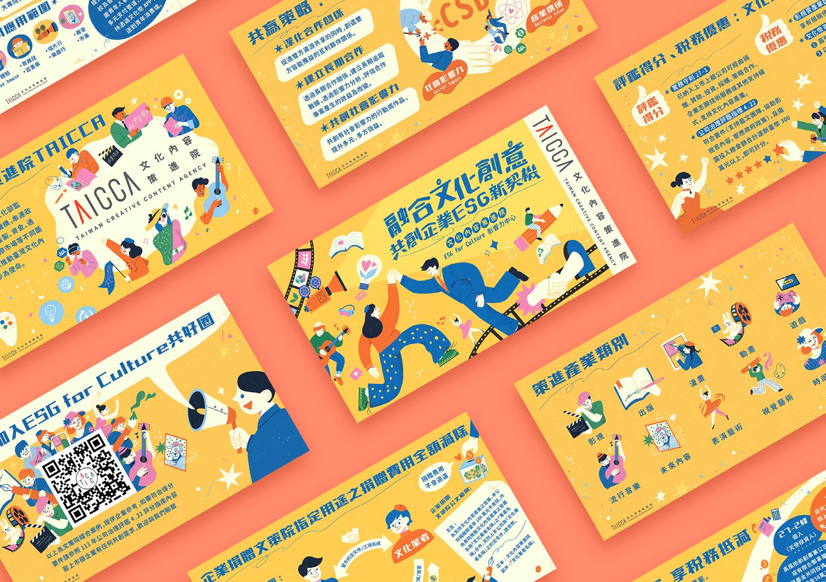 與文策院合作的企業理念宣導設計,以平面插畫風格生動詮釋「ESG for Culture」的核心概念。