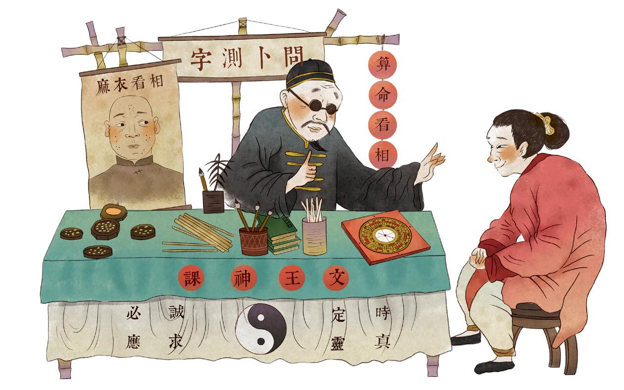 生動的筆觸描繪古時代多樣的算命技藝,展現古人透過天文、卜卦、相術 等方式,探索命運奧秘的智慧與文化之美。作品融合細膩的細節與藝術表 現,帶領觀者穿越時光,感受傳統占卜術的獨特魅力與深厚意涵。