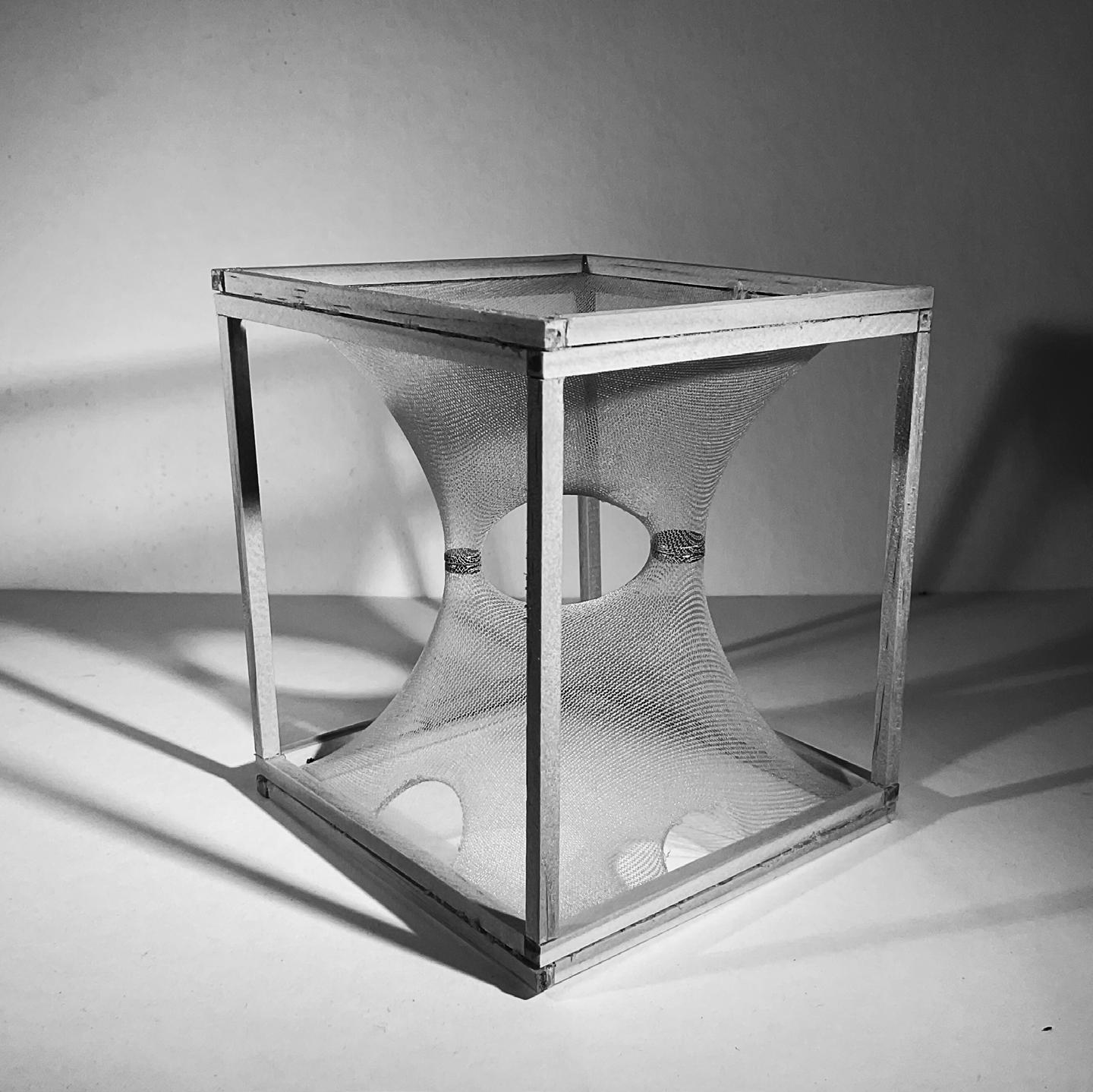 With the different direction of tension pull, we can create a lot of function. If we pull up, the space just become a temperary reading tent in the city. If we grow a tree on the fabric, it compose a beautiful curve line because of the "weight of life."